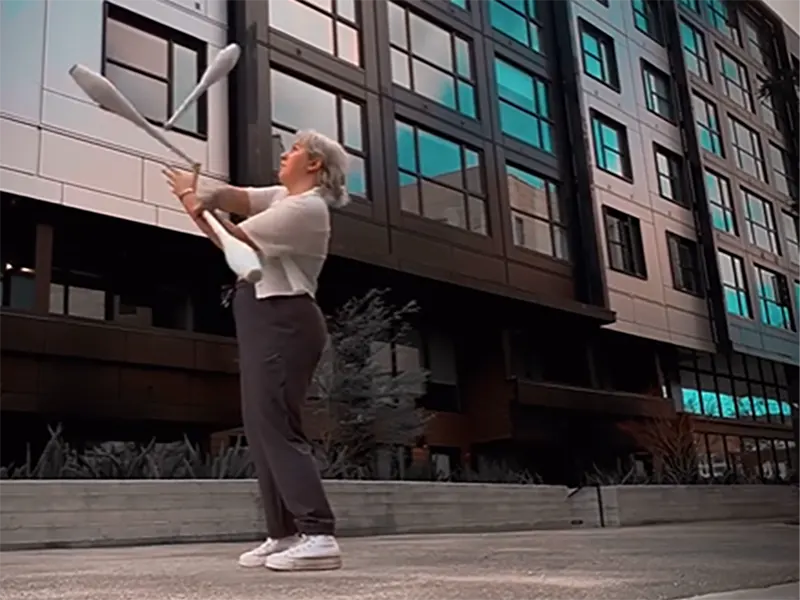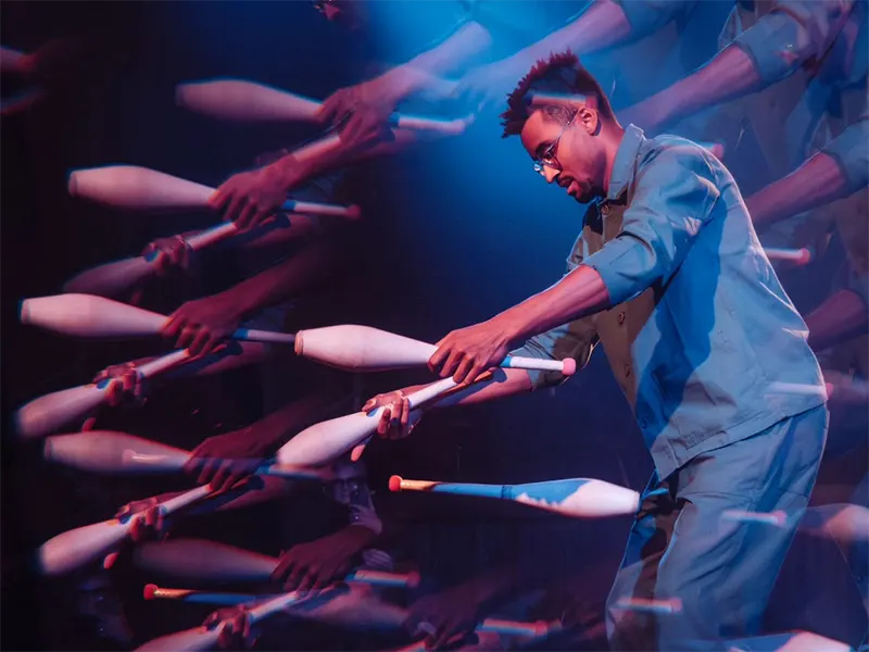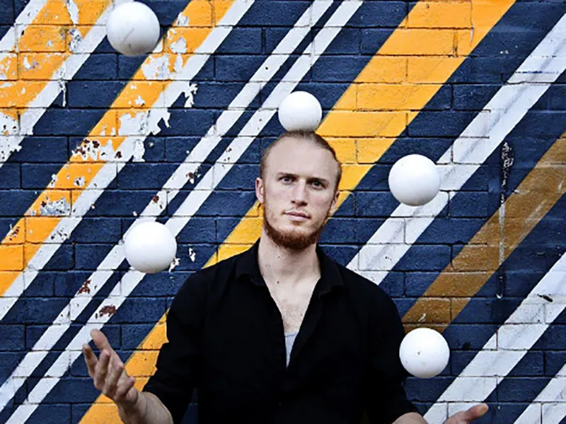 Related to the English word legerdemain and the Spanish word malabares, the word "juggling" can be used to describe all types of play with props, and thus a "juggling festival" is where all object manipulators (and their friends) can come together to play and perform with hoops, clubs, balls, rings, poi, yo-yos, and so on.